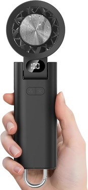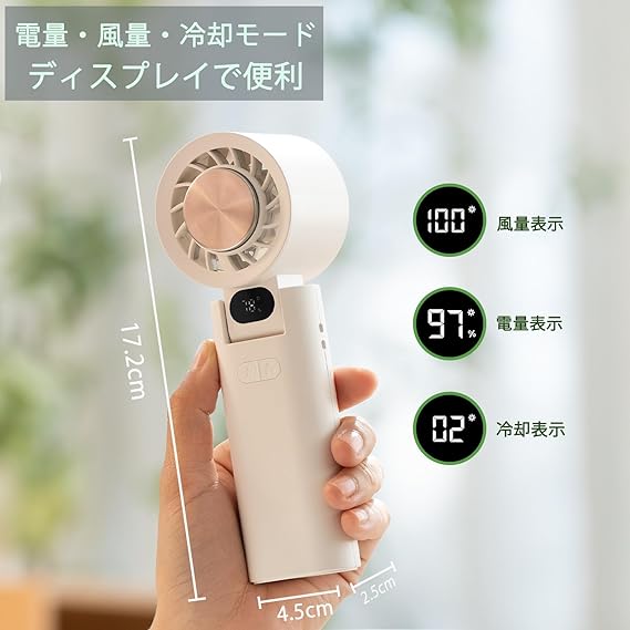 【爆風 携帯扇風機】高速モーター採用により、強力な風を実現します。風量が100段階で調節可能なため、オフィスのデスクからジムでのトレーニングまで幅広く対応します。「そよ風」から「強風」まで、シーンにぴったりの風量を自由に選べます。