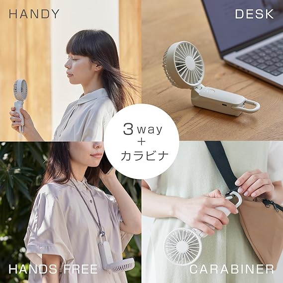 リズム(RHYTHM) ハンディファン 2025 大風量 静音 3WAY (手持ち 首掛け 卓上) [国内メーカー] 風量5段階 Type-C対応 カラビナ&ストラップ付き 小型 携帯扇風機 Silky Wind Mobile 3.2 ライトグレー (オフホワイト) 9ZF040RH08 a