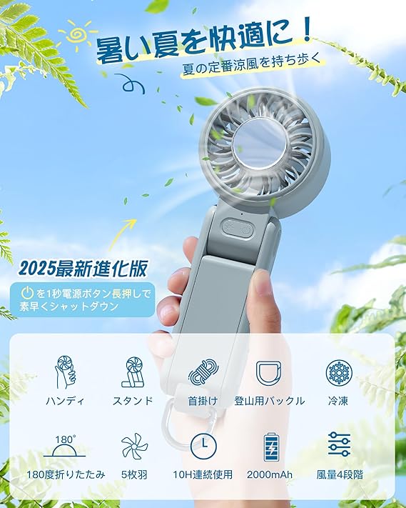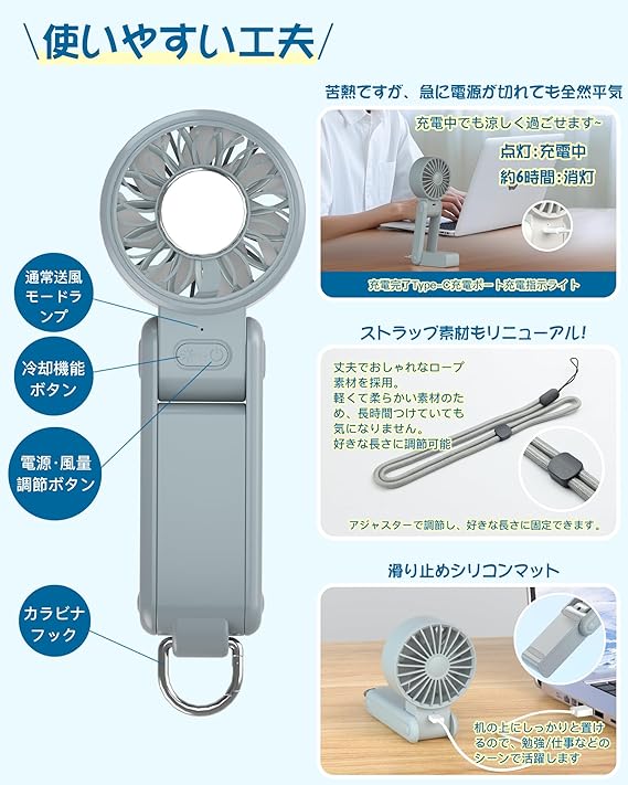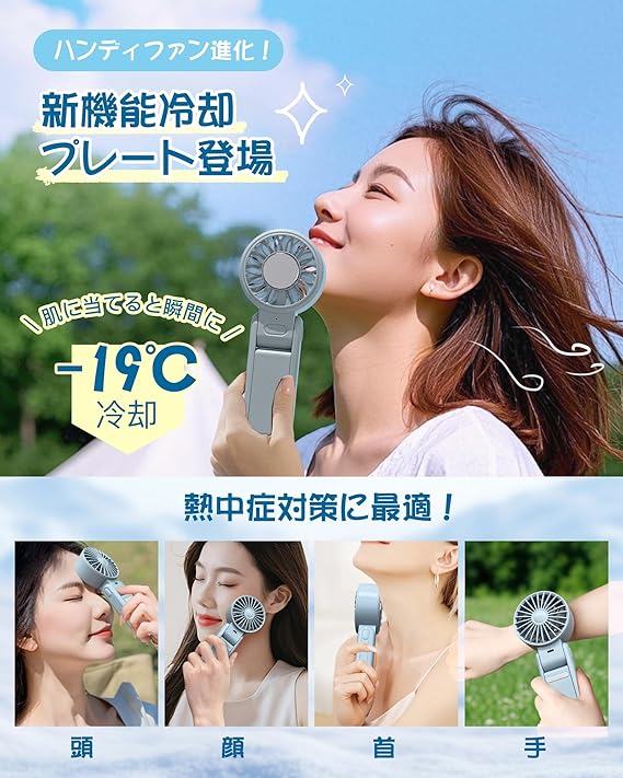 【2025年発売新モデルハンディファン・180°無段階調節】ハンディファン 冷却 ハンディ扇風機 冷却プレート 4WAY(卓上?手持ち?首掛け?カラビナ付き) 小型 携帯扇風機 冷感 手持ち扇風機 爆風 4段階風量調整 180°無段階調節 Type-C急速充電 熱中症対策(グレー) a
