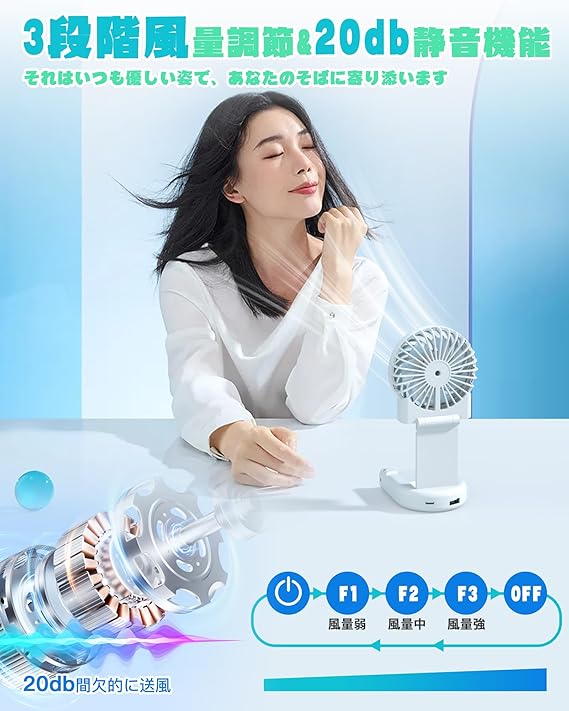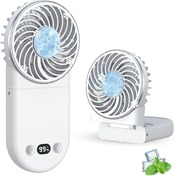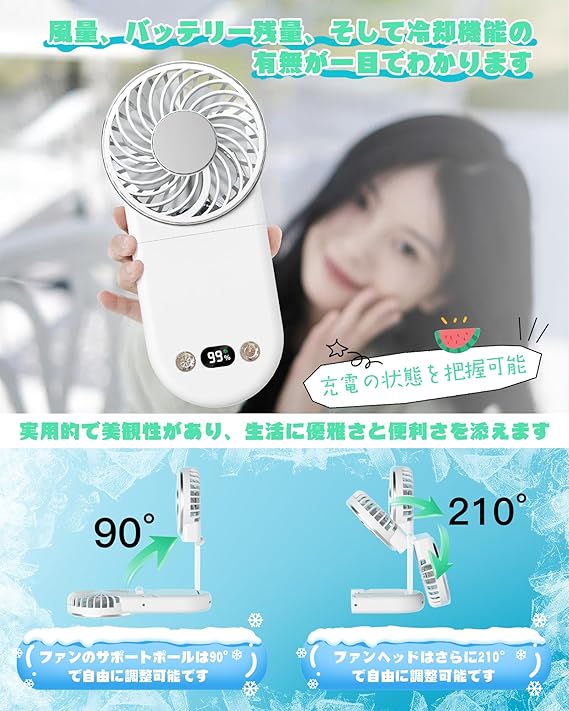 ハンディファン【2025夏新昇級・接触冷感 急速冷却・折り畳み】扇風機 大風量 携帯 持ち運び小型 冷却プレート搭載 TYPE-C充電式 LCD液晶画面 残量表示 軽量 3段階風力調節7WAY 強力静音 熱中症対策暑さ対策長時間稼働 首掛けストラップ付き 卓上 手持ち ホリデーギフト 白い a