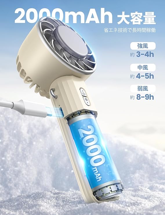【ベルチェ半導冷却プレート・熱中症対策】ハンディファンはベルチェ半導冷却プレートを搭載、暑い夏には冷却機能をオンにして、冷却プレートを首、額、手首などに貼り付けるだけで、心地よく氷のような冷たさが感じられます。 夏には欠かせない便利なアイテム。注意:冷却機能は送風機能使用後にのみ使用可能で、単独では使用できません。また、冷却機能を作動させるには、冷却ボタンを