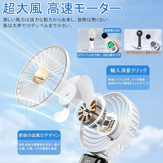 【2024年新登場・3in1携帯扇風機+スマホスタンド】携帯扇風機は手持ち扇風機・卓上扇風機・首掛け扇風機3つの機能を同時に兼ね備えています。ハンド部分を折り畳んで卓上ファンとなります。オフィスや自宅でのリモートワークにおすすめです。買い物や外出時には付属のネックストラップを使用して、ハンズフリーで涼しい風を楽しめます、両手を完全解放!さらに、スマートフォンホルダーとしても使えるので、外出先でスマートフォンホルダーを忘れても、簡単に動画を見ることができる。
