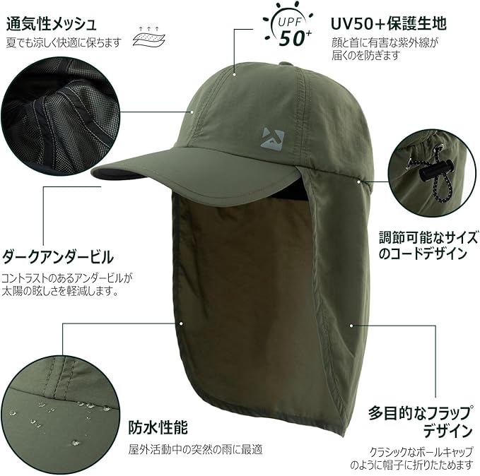 [TOP-EX] 大きいサイズ キャップ 日除け UVカット 日よけ帽子 紫外線対策 ネックカバー スポーツ帽子 男女兼用 アウトドア 野球帽 春夏秋 a
