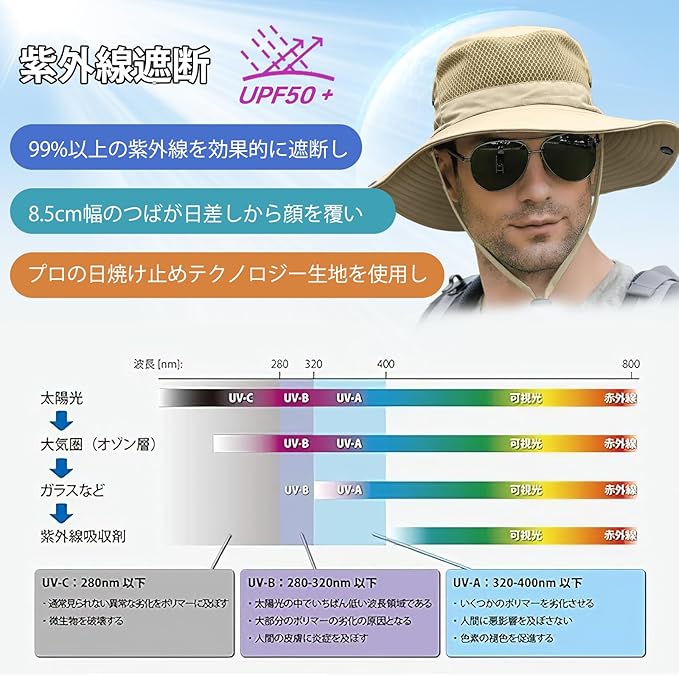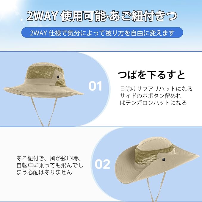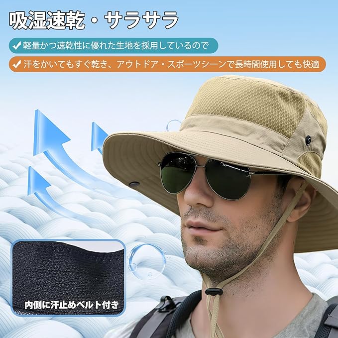[CANFEEL] サファリハット メンズ アウトドアハット 日焼け防止 uvハット帽子 登山 帽子 フィッシングハット メッシュ 帽子 メンズ ハット通気 つば広 撥水 速乾性 軽量 防風
