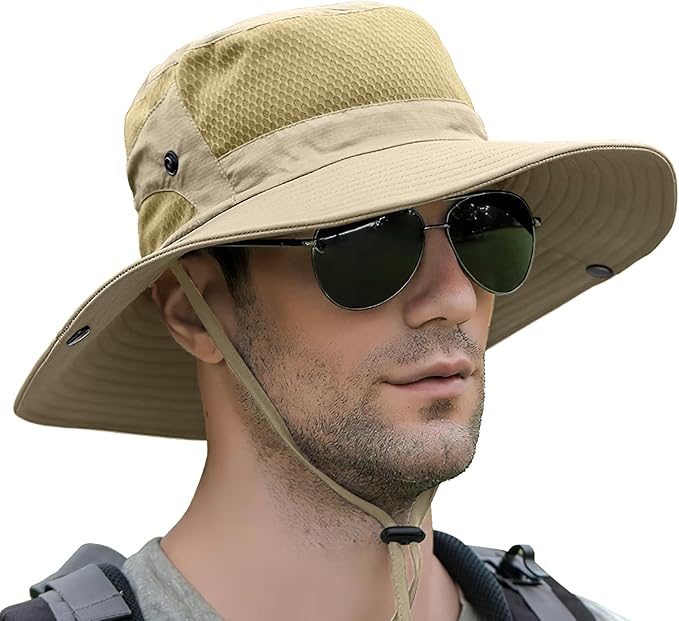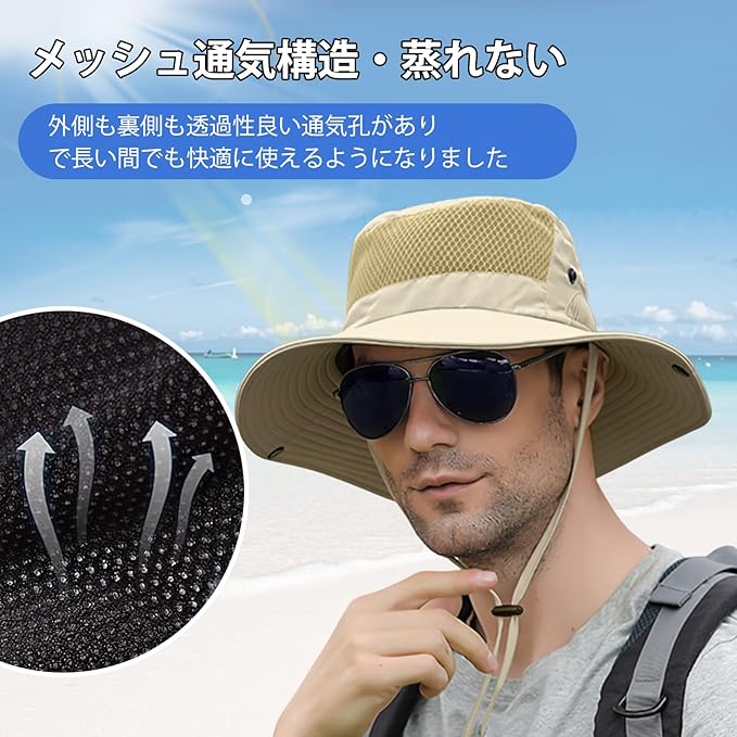 [CANFEEL] サファリハット メンズ アウトドアハット 日焼け防止 uvハット帽子 登山 帽子 フィッシングハット メッシュ 帽子 メンズ ハット通気 つば広 撥水 速乾性 軽量 防風 d
