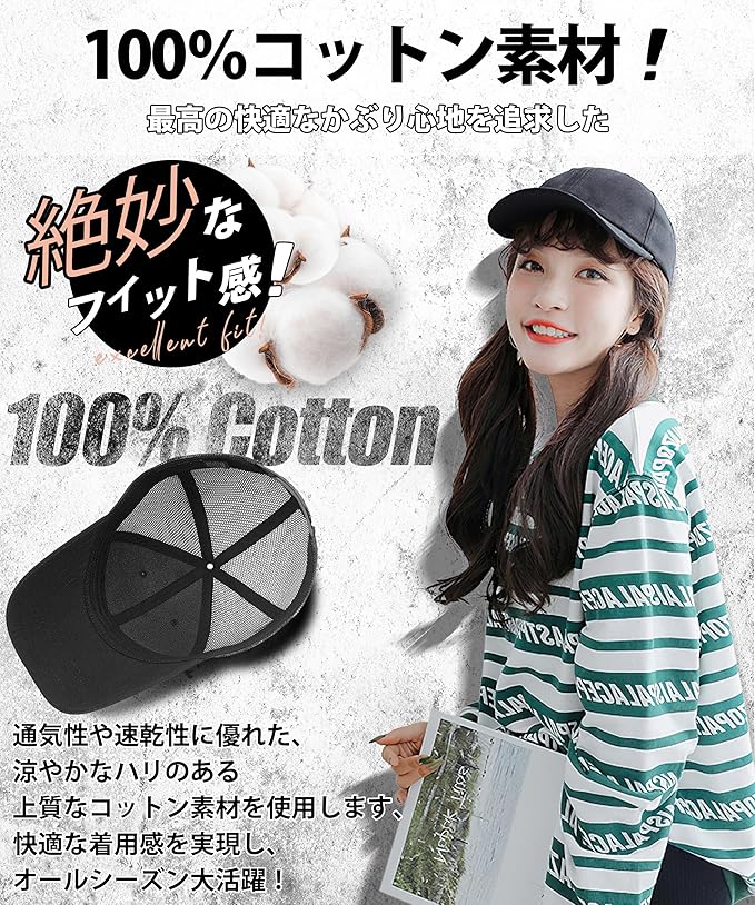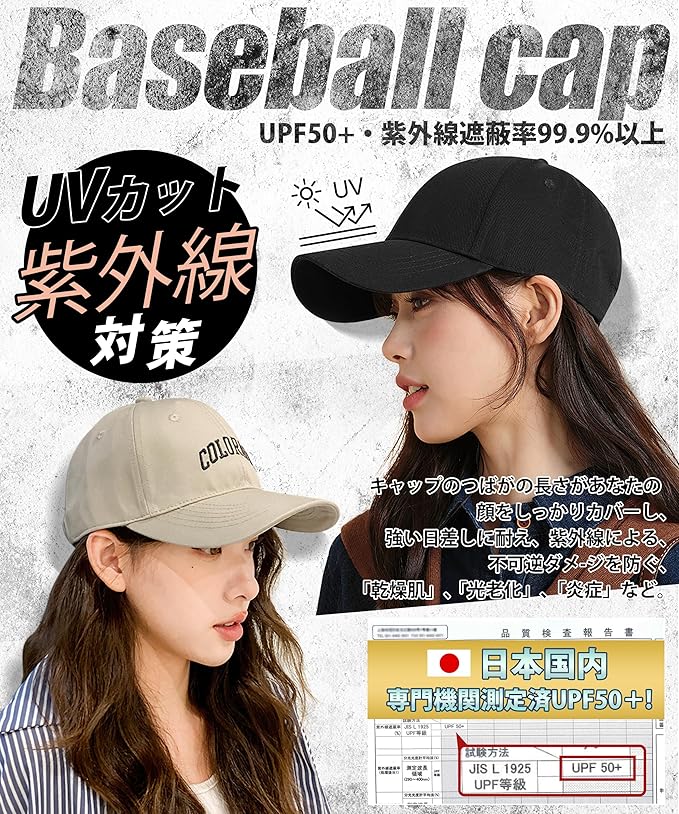 [PALAME] キャップ レディース 大きいサイズ 帽子 【コットン100%・UPF50+認定済・美シルエット】 UVカット帽子 紫外線対策 型崩れない 深め 小顔効果 シンプル おしゃれ 人気 野球帽 アウトドア 男女兼用 調整可能 56-62cm