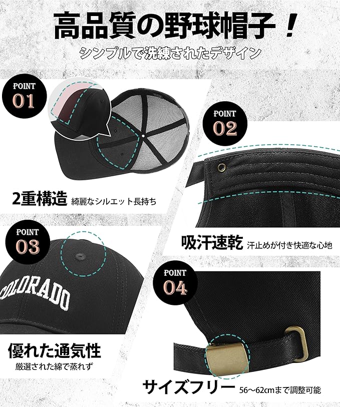 [PALAME] キャップ レディース 大きいサイズ 帽子 【コットン100%・UPF50+認定済・美シルエット】 UVカット帽子 紫外線対策 型崩れない 深め 小顔効果 シンプル おしゃれ 人気 野球帽 アウトドア 男女兼用 調整可能 56-62cm b