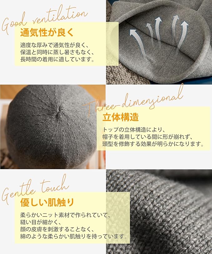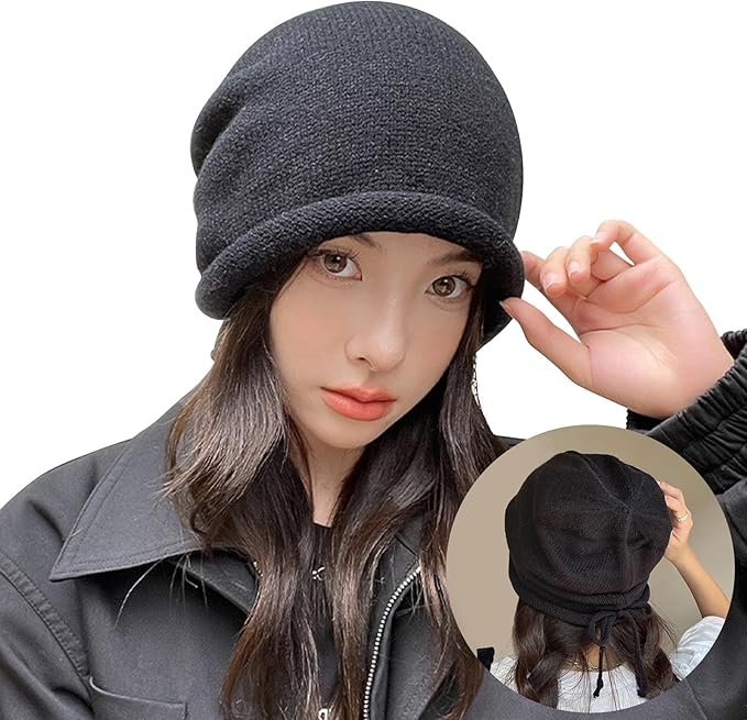 [MOWO] ニット帽 ニット帽子 レディース 秋冬 【調節ロープ付き・可愛い小顔・耳までまん丸と包む】 軽くて暖かい 大きいサイズ 防寒防風 保温 柔らかい 締め付け感ゼロ リボン 通気 ふんわり 帽子 ケア帽子 ビーニー帽 無地 c