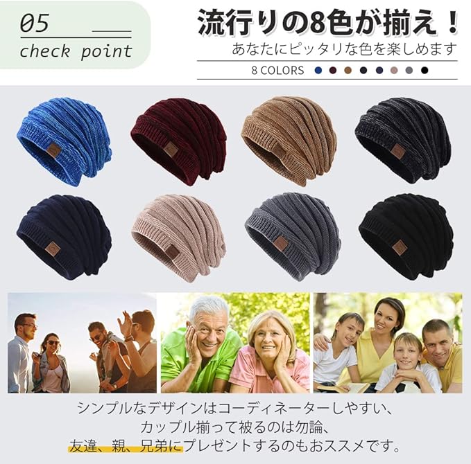 [Andeor] ニット帽 メンズ 冬 防寒 ふわふわ裏起毛・保温強化・360度美シルエット・静電気防止・大きいサイズ・伸縮性 保温 柔らかい シンプル おしゃれ 防風 無地 通勤・通学・自転車・スキー・スポーツ・アウトドア 男女兼用 a