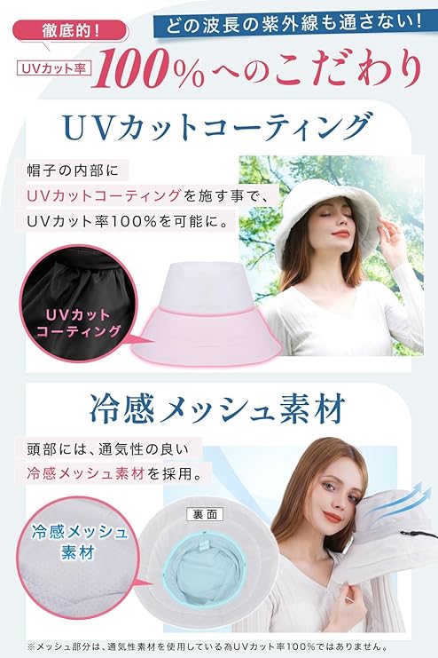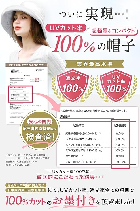 エレガントハット UVカット率100% 完全遮光 日焼け防止 日除け帽子 帽子 レディース 紫外線 ハット a