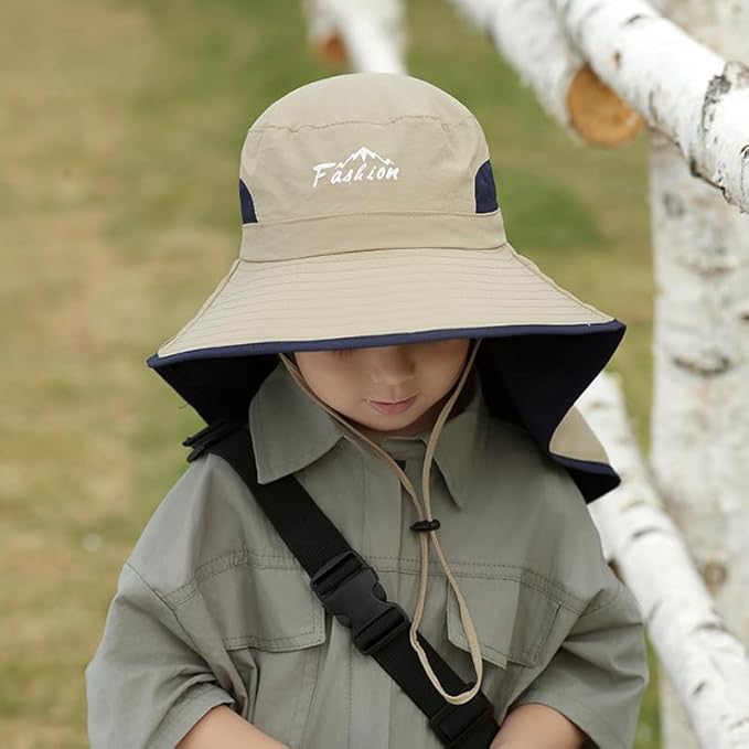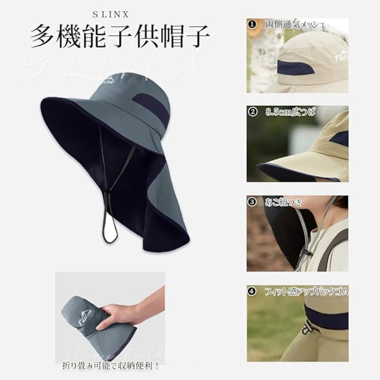 [SLINX] ベビー 帽子 ハット キッズ 子供 日よけ サファリハット つば広 日除け帽子 女の子 男の子 赤ちゃん UVカット 速乾 メッシュ あごひも 紫外線対策 フラップキャップ帽子 春夏 通園/通学/海遊び/旅行 XM09 a