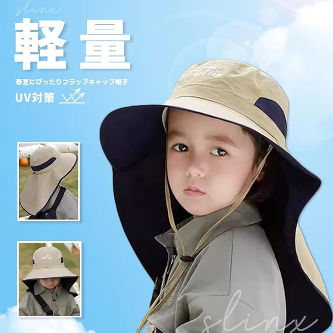 [SLINX] ベビー 帽子 ハット キッズ 子供 日よけ サファリハット つば広 日除け帽子 女の子 男の子 赤ちゃん UVカット 速乾 メッシュ あごひも 紫外線対策 フラップキャップ帽子 春夏 通園/通学/海遊び/旅行 XM09