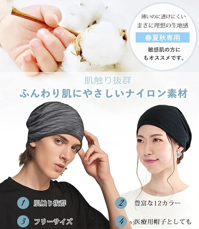 [Bafup] ニット帽 メンズ 夏【ひんやりとして冷たい感じ・冷感素材・優しい肌触り・吸汗速乾】夏用 帽ニット帽子 ケア帽 ニットキャップ ビーニー 薄手 通気性 蒸れない 大きい 肌に優しい ストレッチ性 柔らかい 男女兼用