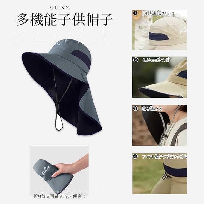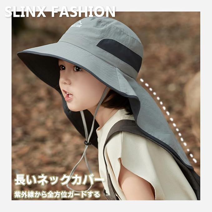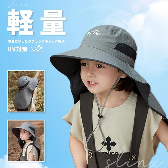 [SLINX] ベビー 帽子 ハット キッズ 子供 日よけ サファリハット つば広 日除け帽子 女の子 男の子 赤ちゃん UVカット 速乾 メッシュ あごひも 紫外線対策 フラップキャップ帽子 春夏 通園/通学/海遊び/旅行 XM09 e