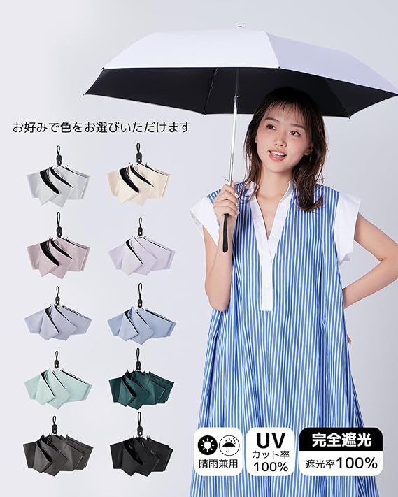 konciwa 日傘 超軽量 189g-199g UVカット率 100% 完全遮光 遮熱 ワンタッチ自動開閉 折りたたみ傘 コンパクト 折り畳み日傘 紫外線遮断 耐風撥水 晴雨兼用 携帯便利 メンズ レディース 母の日 父の日 b