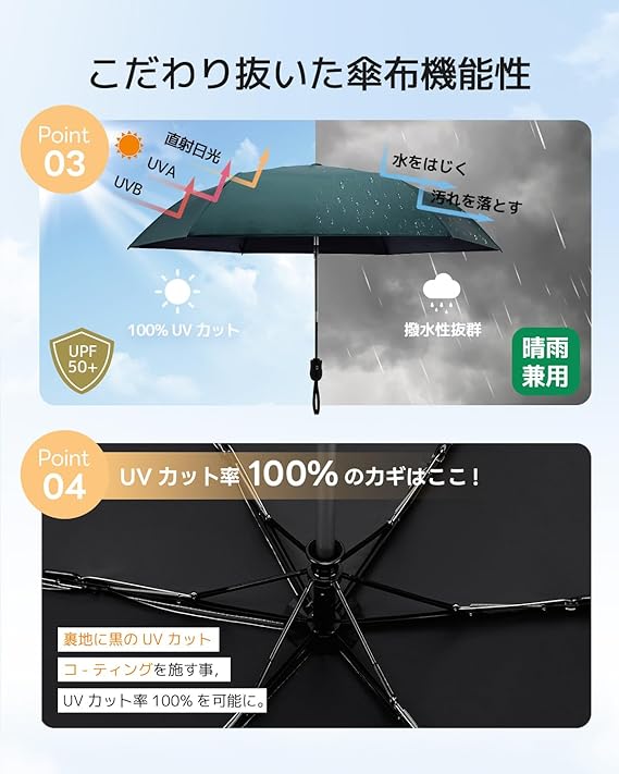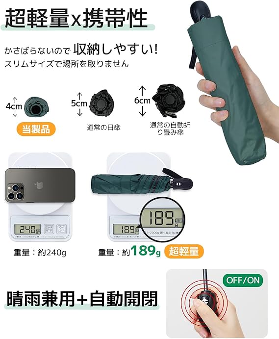 konciwa 日傘 超軽量 189g-199g UVカット率 100% 完全遮光 遮熱 ワンタッチ自動開閉 折りたたみ傘 コンパクト 折り畳み日傘 紫外線遮断 耐風撥水 晴雨兼用 携帯便利 メンズ レディース 母の日 父の日