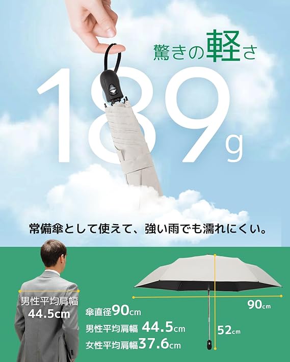 konciwa 日傘 超軽量 189g-199g UVカット率 100% 完全遮光 遮熱 ワンタッチ自動開閉 折りたたみ傘 コンパクト 折り畳み日傘 紫外線遮断 耐風撥水 晴雨兼用 携帯便利 メンズ レディース 母の日 父の日 f