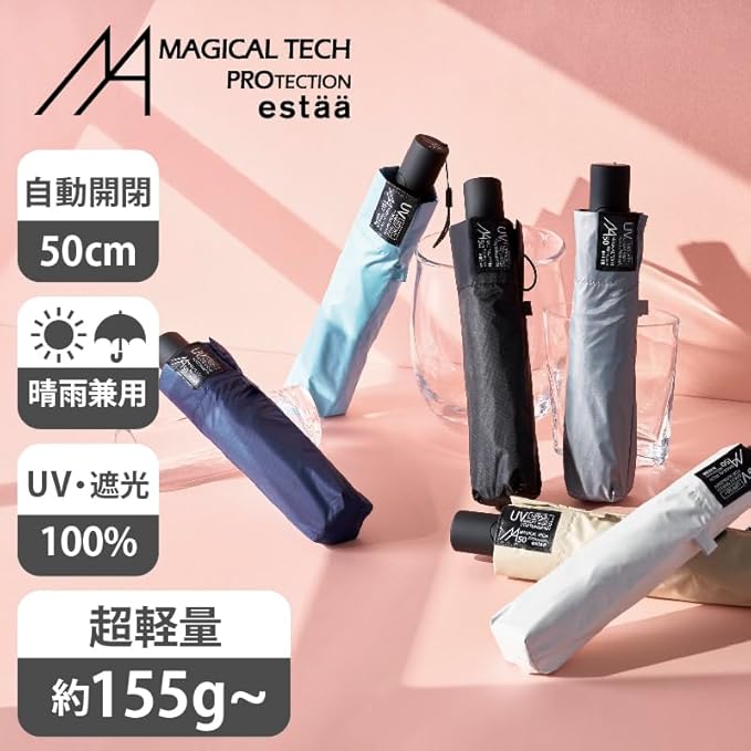 マジカルテック プロテクション 自動開閉 折りたたみ傘 遮光100% 遮熱 UVカット 日傘 晴雨兼用 軽量 スリム ワンタッチ ジャンプ 無地 親骨50cm 58cm 30211 30226 今田美桜 アンバサダー e