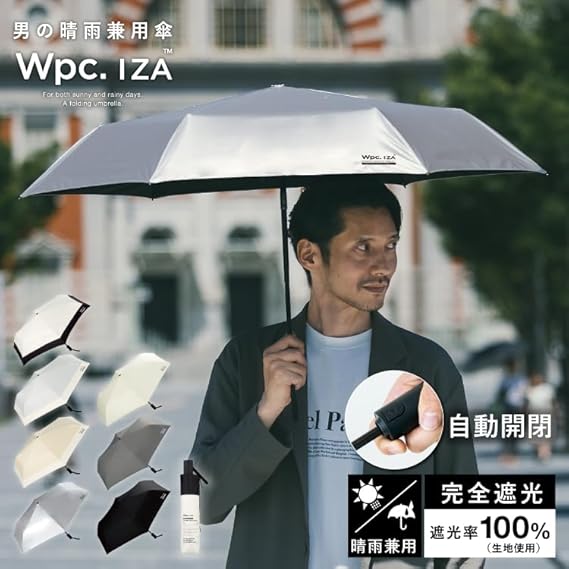 【2025】男の晴雨兼用傘 日傘 IZA Type:AUTOMATIC & SAFE シルバー 折りたたみ傘 自動開閉 通勤 通学 旅行 オシャレ 可愛い 女性 レディース ZA021-001-102 a