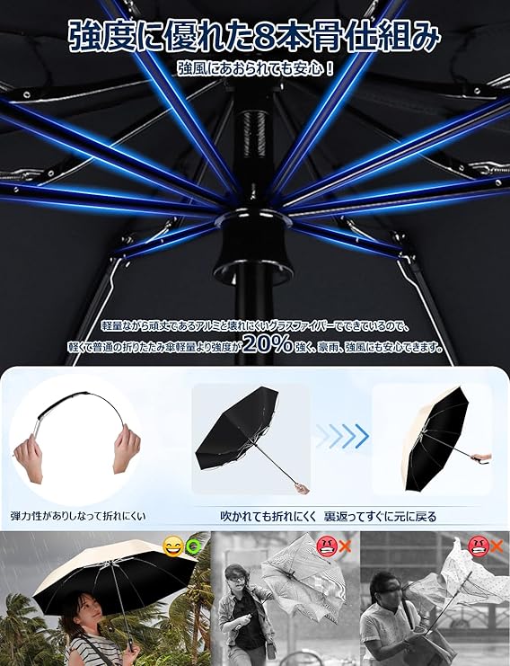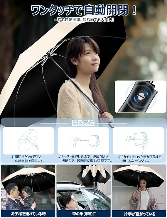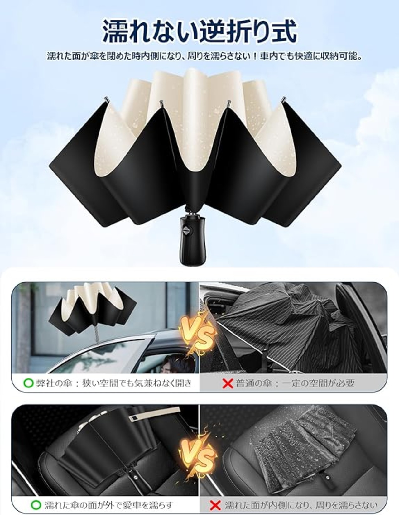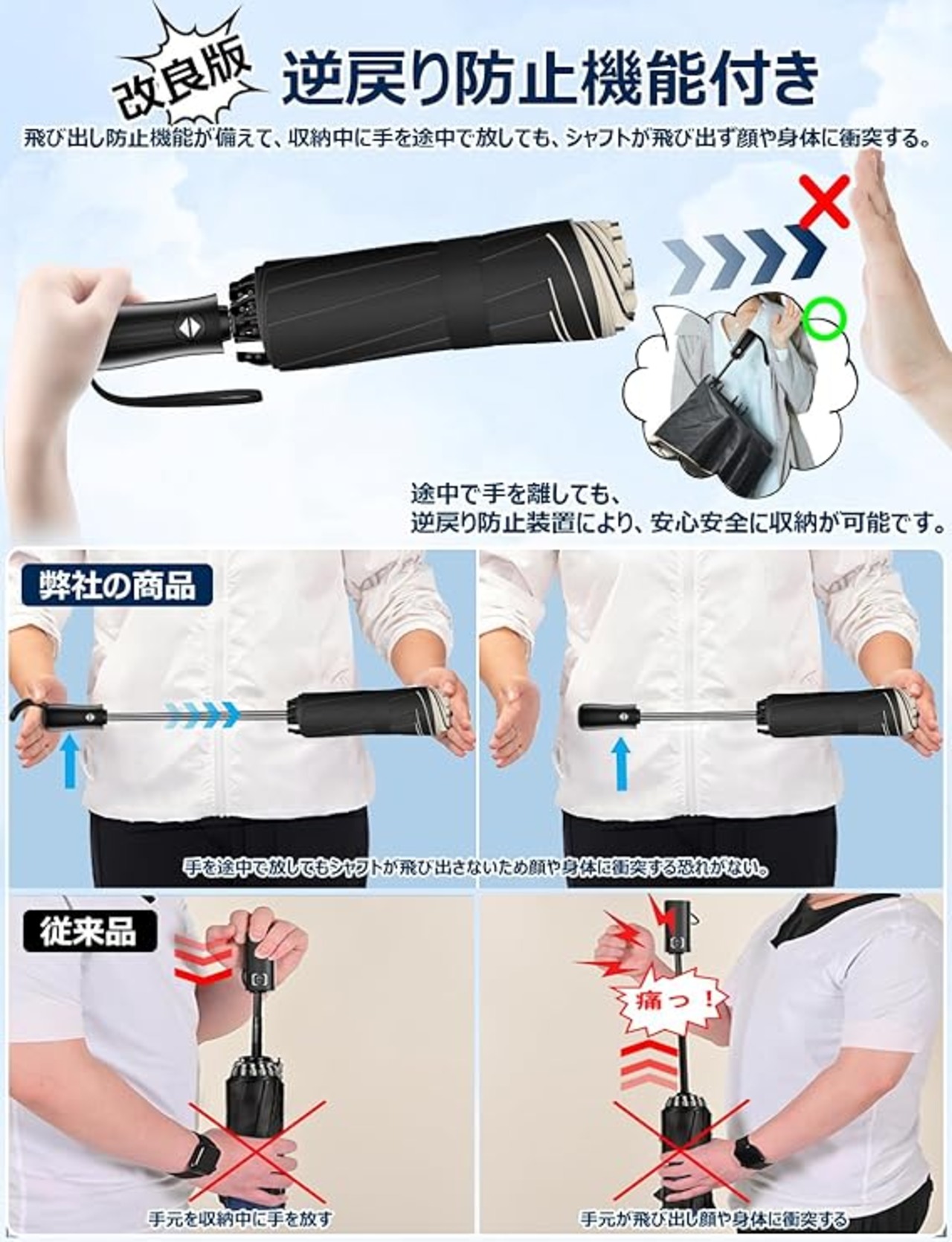折りたたみ傘 【逆戻り防止安全設計・逆折り式傘】 折り畳み傘 ワンタッチ自動開閉 飛び出し防止 逆折り畳み傘 風に強い テフロン加工 耐風撥水 丈夫耐久 折りたたみ日傘 UPF50+ 遮光遮熱 UVカット 晴雨兼用傘 梅雨対策 台風対応 豪雨対応 メンズ レディース 収納ポーチ付き a