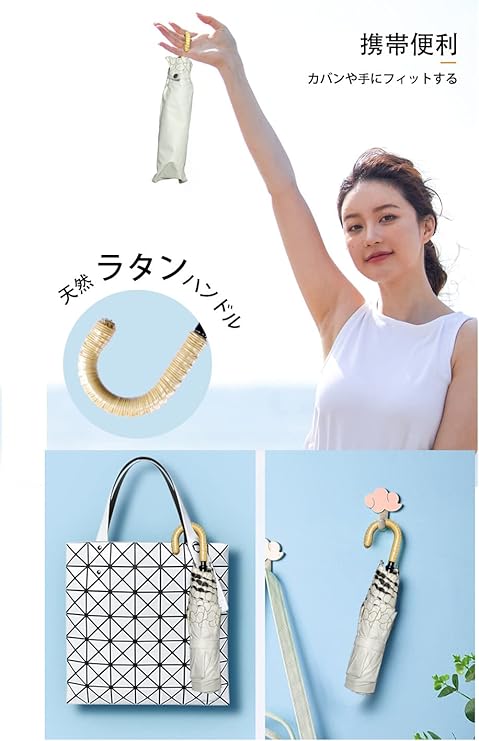 超軽量 日傘 おりたたみ傘 レディース 約173g/193g uvカット 完全遮光/遮熱 晴雨兼用傘 植物ラタン製 アルミ製 J型ハンドル かわいい 日傘兼用雨傘 高密生地 超撥水 耐風 携帯便利 プレゼント e
