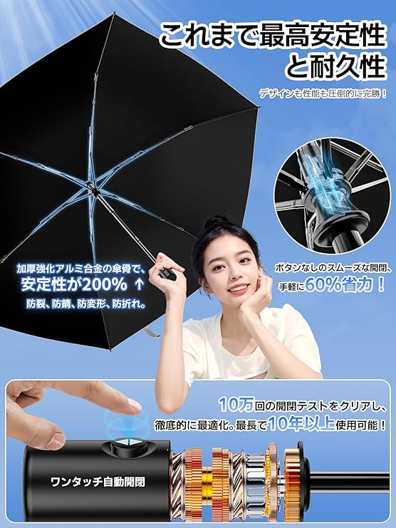 日傘UVカット100遮光遮熱 200g超軽量【最涼の日傘・UV0・JIS認証】折り畳み傘 日焼け止め 肌を守る 暑さ対策 ワンタッチ自動開閉 折りたたみ傘 耐風頑丈 携帯便利 超撥水 兼用雨傘おりたたみ傘 レディース/メンズ/子供/大人兼用 収納ポーチ付き 父の日 母の日 お祝い 誕生日 プレゼント 通勤 通学 旅行 遠足 スポーツ観戦