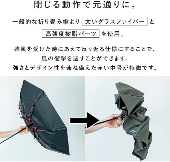 【2025】男の晴雨兼用傘 日傘 IZA Type:WIND RESISTANCE ブラック 折りたたみ傘 親骨55cm 通勤 通学 旅行 オシャレ 可愛い 女性 レディース ZA019-001-102 a