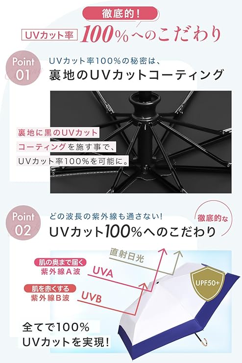 【現役皮膚科医監修】 日傘 UVカット率100% バイカラー 完全遮光 折りたたみ傘 晴雨兼用 レディース a