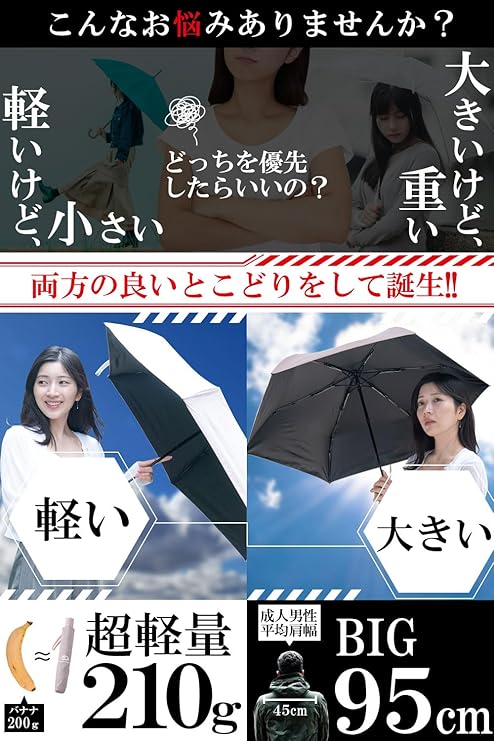 日傘 【広げてBIG95cmx 軽量 210gx畳むと4.5cm】 UVカット 100 完全遮光 遮熱 折畳み 軽量 晴雨兼用 折りたたみ日傘 レディース メンズ 【晴れの国 岡山メーカー 企画】 a