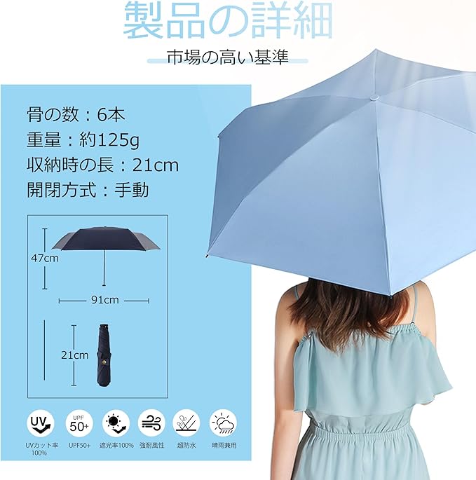 日傘 晴雨兼用 超軽量 125g UVカット率 100% 完全遮光 遮熱 折りたたみ傘 コンパクト 折り畳み日傘 紫外線遮断 耐風撥水 携帯便利 メンズ レディース 母の日 父の日