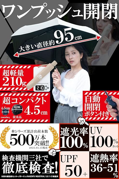 日傘 【広げてBIG95cmx 軽量 210gx畳むと4.5cm】 UVカット 100 完全遮光 遮熱 折畳み 軽量 晴雨兼用 折りたたみ日傘 レディース メンズ 【晴れの国 岡山メーカー 企画】 d