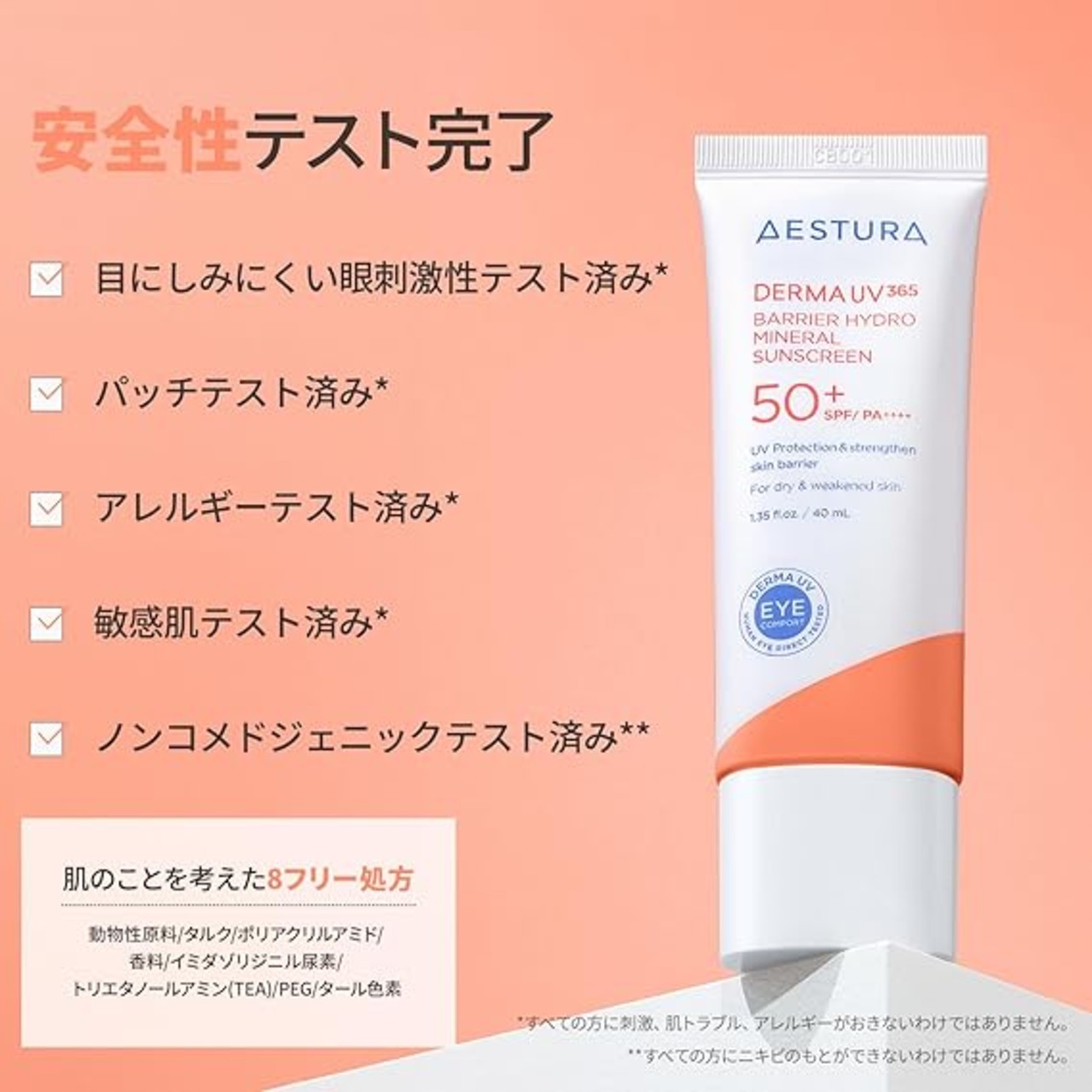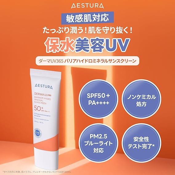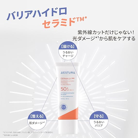 【AESTURA】ダーマUV365 バリアハイドロミネラルサンスクリーン 日焼け止め 40mL SPF50+ PA++++ UVカット 乾燥肌 保湿 ダーマコスメ a