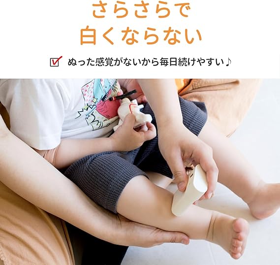 【サラっとした触り心地】塗った後でもサラッとした肌触りで、快適に過ごすことができます。べたつくことが苦手なお子様におすすめしたい日焼け止めです。