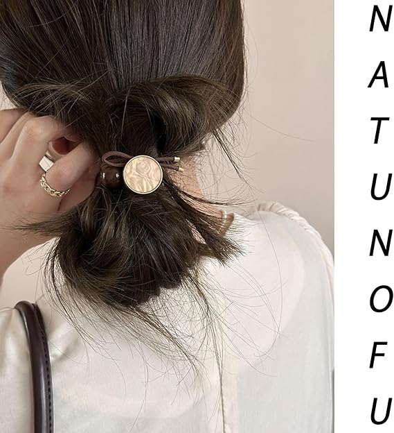 【デザイン】リボンとメタルアクセサリーが付いており、ヘアゴムをよりおしゃれでエレガントに見せてくれます。シンプルなスタイルでは、コーディネートに間違いは発生しません。お団子ヘアなど、さまざまなヘアアレンジにも使いやすく、とっても便利。