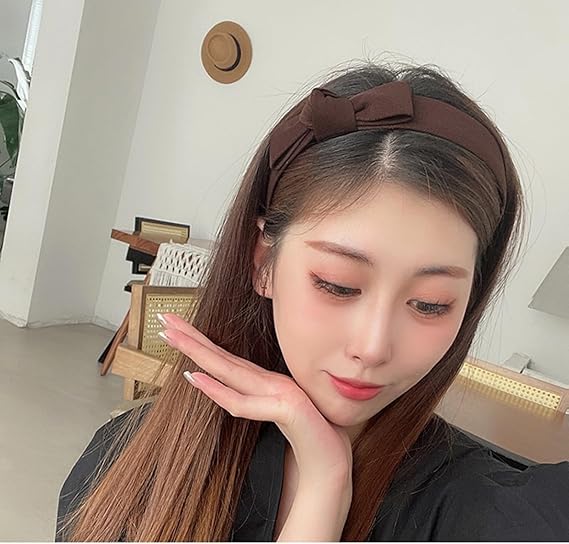 KISARG カチューシャ ヘアアクセサリー 髪留め ヘアバンド おしゃれ 大人 レディース 幅広 リボン付き シンプル 大きめ 痛くない 無地 ダックブラウン a