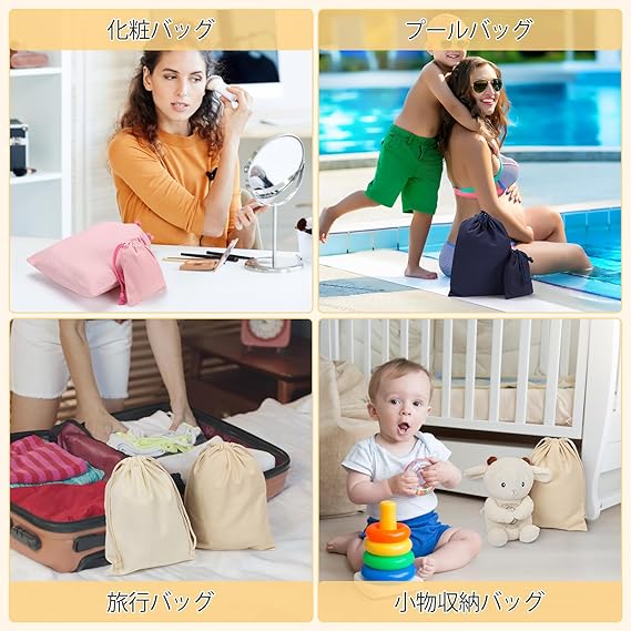 [Etercycle] 巾着袋 2枚セット 無地 帆布 2サイズ18色 キャンバス製 お洒落 かわいい インナーバッグ 収納 旅行 着替え袋 巾着 収納ポーチ アクセサリーポーチ 小物入れ a