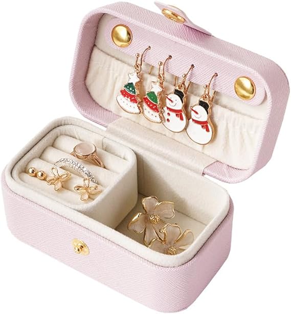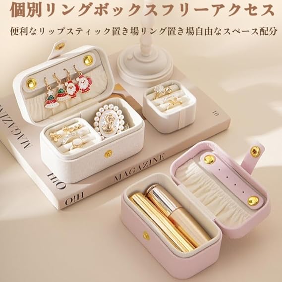 ミニジュエリーボックス 携帯用 アクセサリーケース ミニ 持ち運び ジュエリー収納ボックス コンパクト 収納 宝石箱 可愛い 旅行用 ジュエリーケース 指輪 ネックレス ブレスレット 小物入れ ピアスケース 旅行 出張(ピンク) a