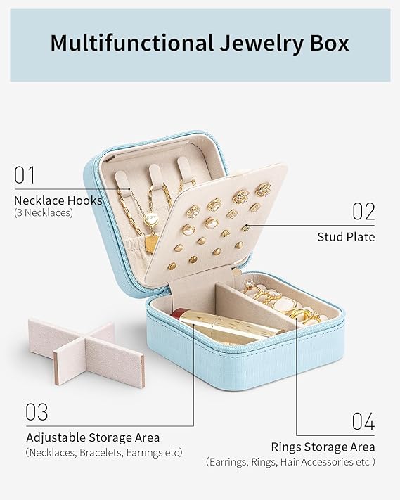 Vlando 正方形アクセサリーケース 持ち運び 小物入れ ジュエリーケース 持ち運び イヤリング 収納 誕生日プレゼント-ブルー a