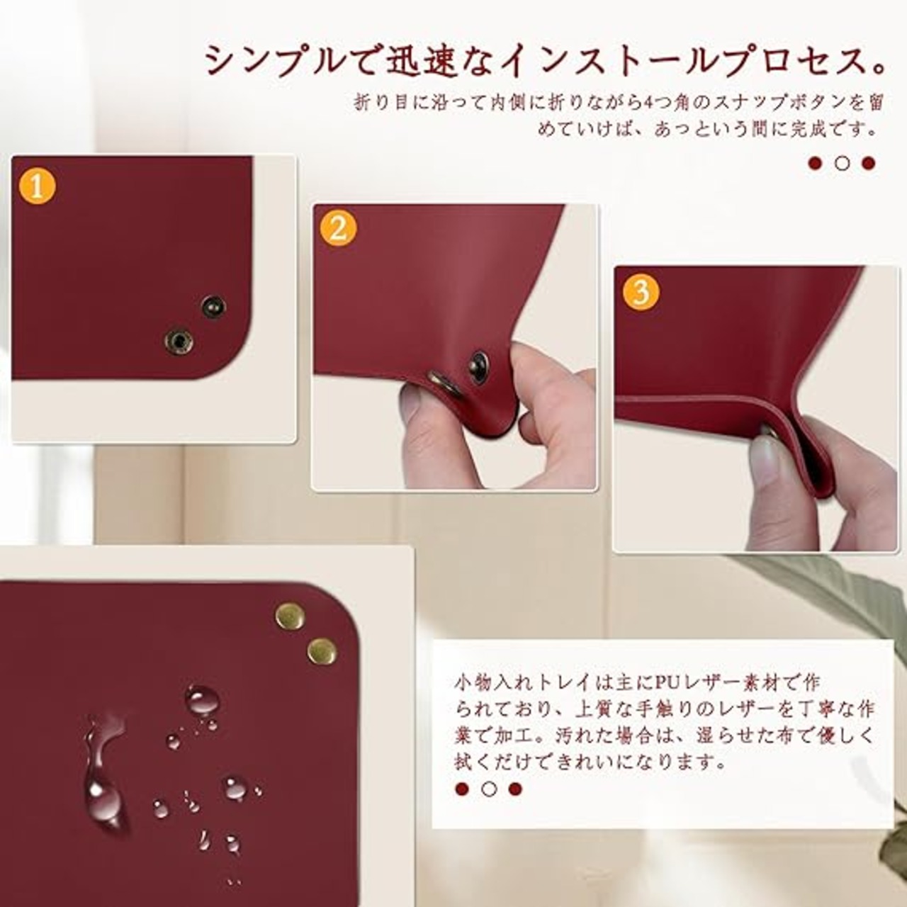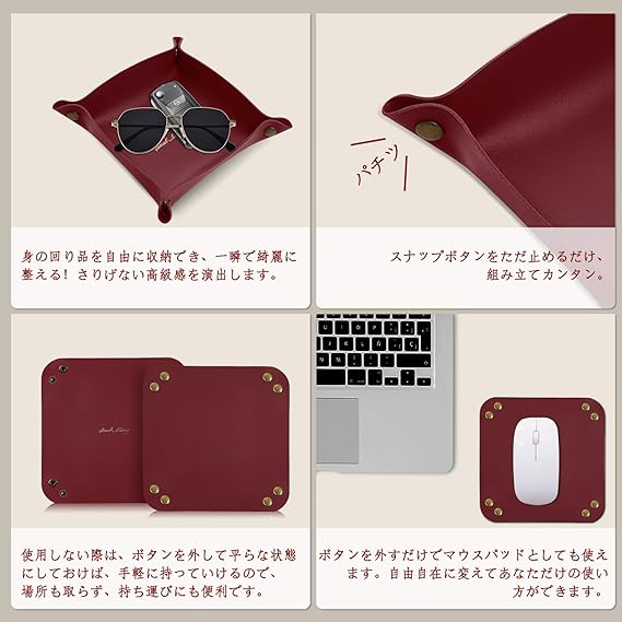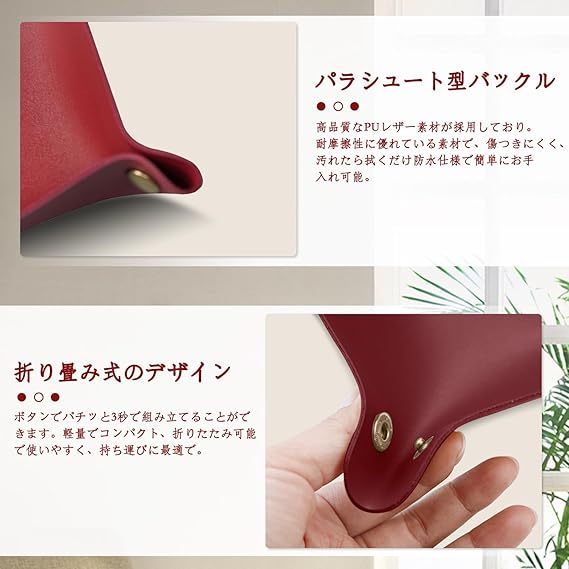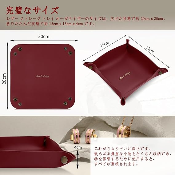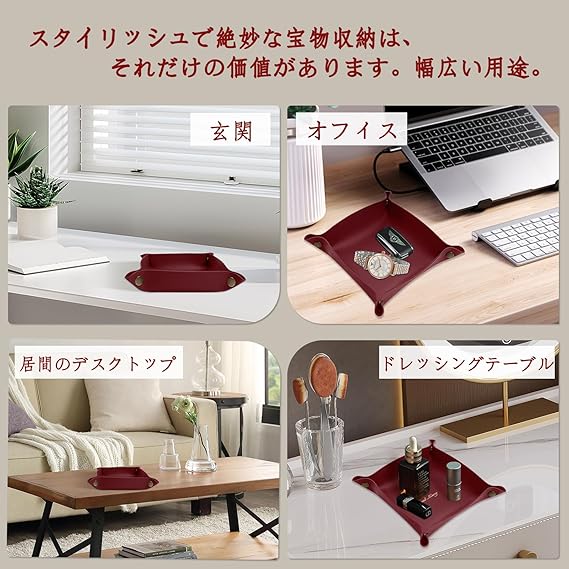 [ShinKin] レザートレイ レザー 収納 デスクトップ収納 小物入れ アクセサリートレイ 折り畳み式 こものいれ ボックス 腕時計 鍵 スマホ メガネ アクセサリー リモコン レザー ジュエリートレイ 鍵置き ピアス入れ 収納ボックス 折りたたみ レザー トレイ 玄関 リビング デスク 小物入れ アクセサリー 収納 卓上 トレー おしゃれ シンプル デザイン 携帯便利 (ワインレッド) a
