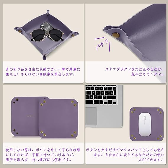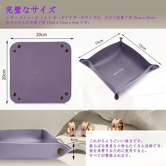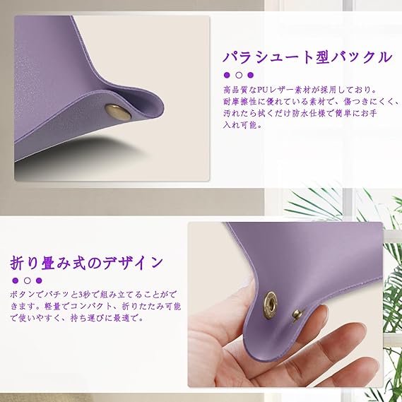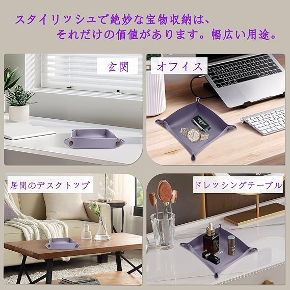 [ShinKin] レザートレイ レザー 収納 デスクトップ収納 小物入れ アクセサリートレイ 折り畳み式 こものいれ ボックス 腕時計 鍵 スマホ メガネ アクセサリー リモコン レザー ジュエリートレイ 鍵置き ピアス入れ 収納ボックス 折りたたみ レザー トレイ 玄関 リビング デスク 小物入れ アクセサリー 収納 卓上 トレー おしゃれ シンプル デザイン 携帯便利 (パープル) a