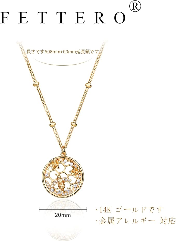 [Fettero] ネックレスレディース 14kゴールド 金属アレルギー対応 シンプル ペンダント チェーンネックレス アクセサリー
