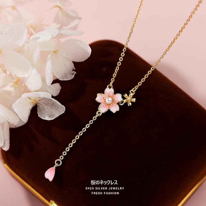 [K.L.Y] ネックレス レディース 人気 桜 シルバー925 純銀製 金属アレルギー対応 人気 ネックレス ピンクさくら 18K ゴールド 可愛い アクセサリー 記念日 誕生日 プレゼント a