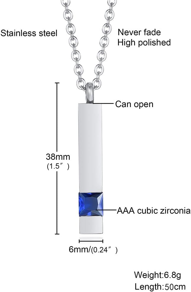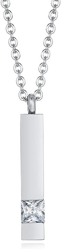 [Rockyu] ネックレス レディース メンズ ステンレス ジルコニア スティックペンダント 手元供養 遺骨 直方体 メモリアルネックレス 防水 上品 記念 ファッションアクセサリー