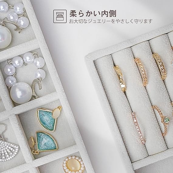取り外し可能なの4層のトレイは、小分けの仕切りが付いて、様々なアクセサリーを見やすく綺麗に整理できます。自宅や店内でジュエリーを保管して展示するのにも最適です。