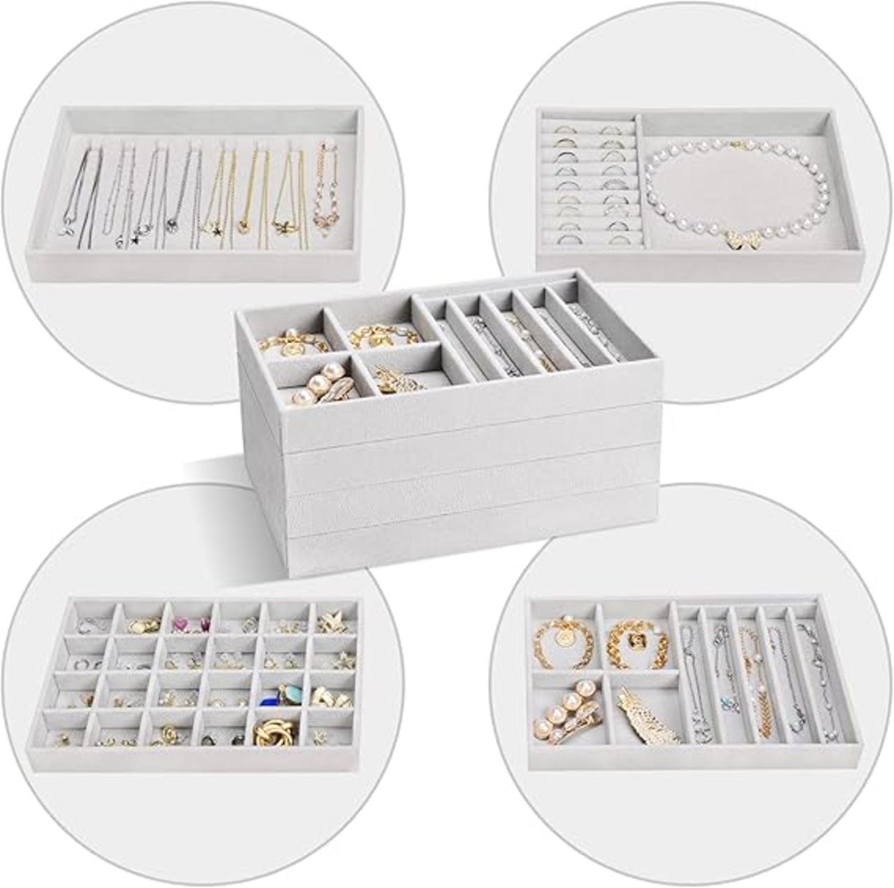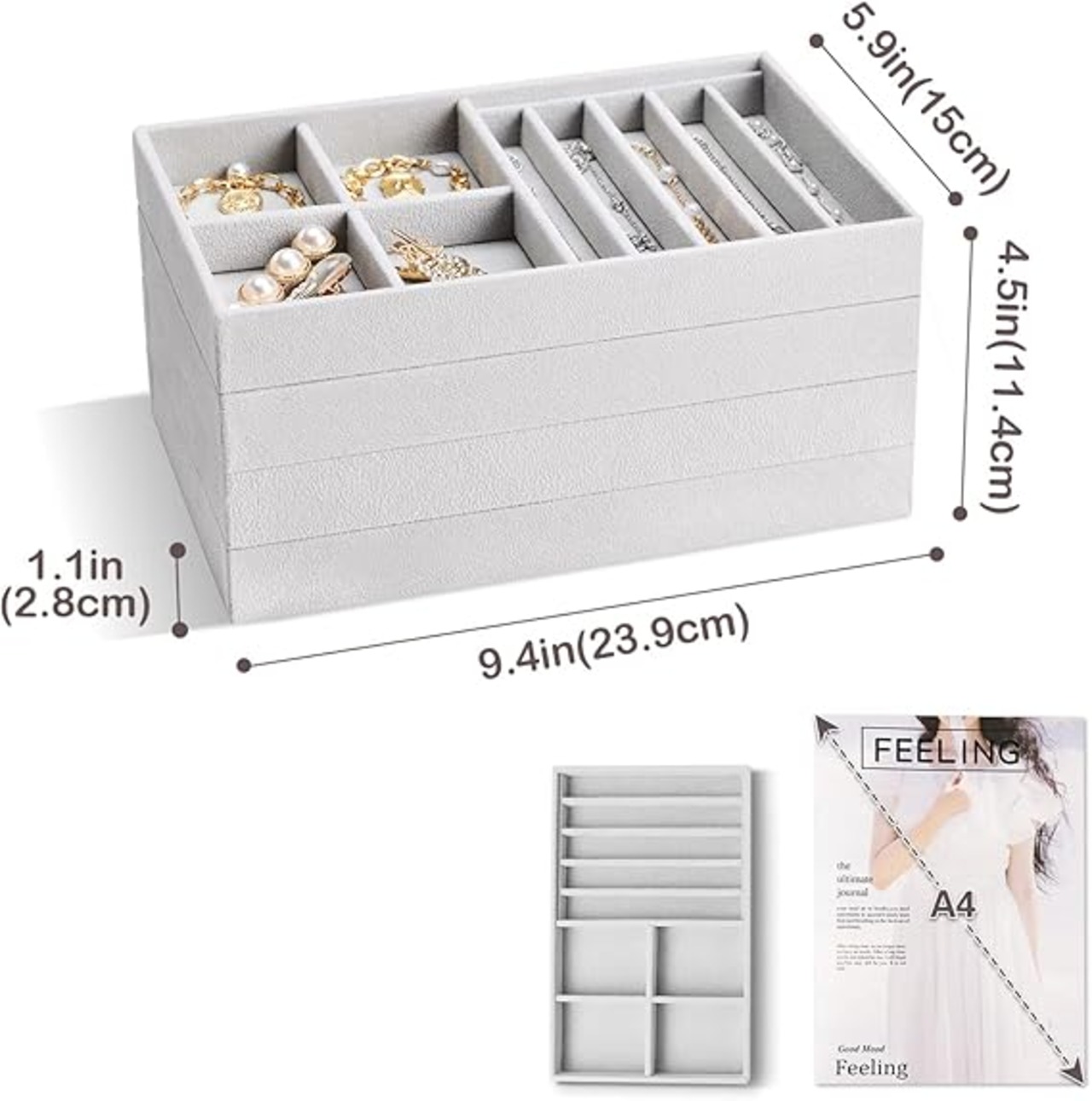 ProCase ジュエリートレイ 4個 ジュエリー収納 積み重ね可能 アクセサリケース ドレッサー引き出し用 ディスプレイ 仕切り付き グレー a