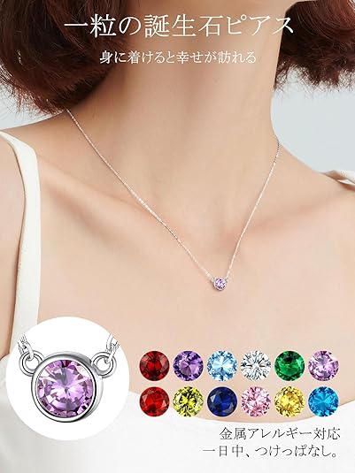 [§U∞7∞U7] U7 一粒 誕生石 6月 ネックレス レディース シルバー925 丸い ジルコニア パワーストーン 大人シンプル ホワイトデー プレゼント 女性 a