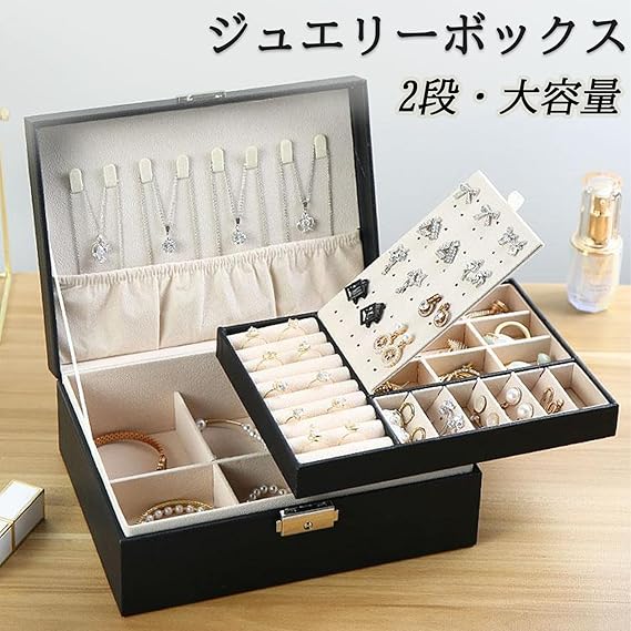 PRETOLE ジュエリーボックス アクセサリー収納ケース 女性 PUレザー おしゃれ 大容量 2層 宝石箱 鍵付き 着脱式の仕切り付き 持ち運び 小物入れ ピアス ネックレス 指輪 イヤリング 母の日 クリスマス 結婚式 記念日 誕生日 プレゼント用 メンズ(ブラック) 23cm*17cm*8cm a