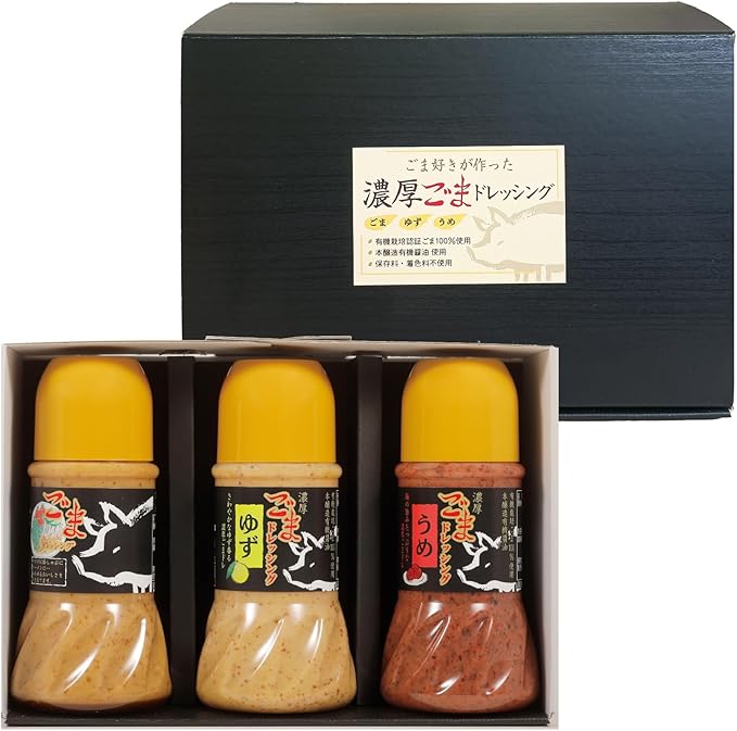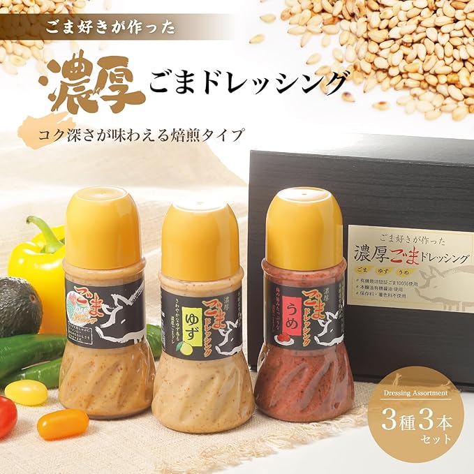 ごま好きが作った濃厚ごまドレッシング 調味料 ギフトセット 230ml×3本(プレーン ゆず うめ)[FAAS] 引越し祝い 新築祝い 贈り物 調味料セット 快気祝い 内祝い 内祝い お返し 贈り物 ラッピング済 母の日 母の日ギフト母の日のプレゼント a