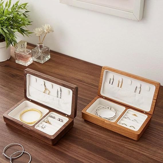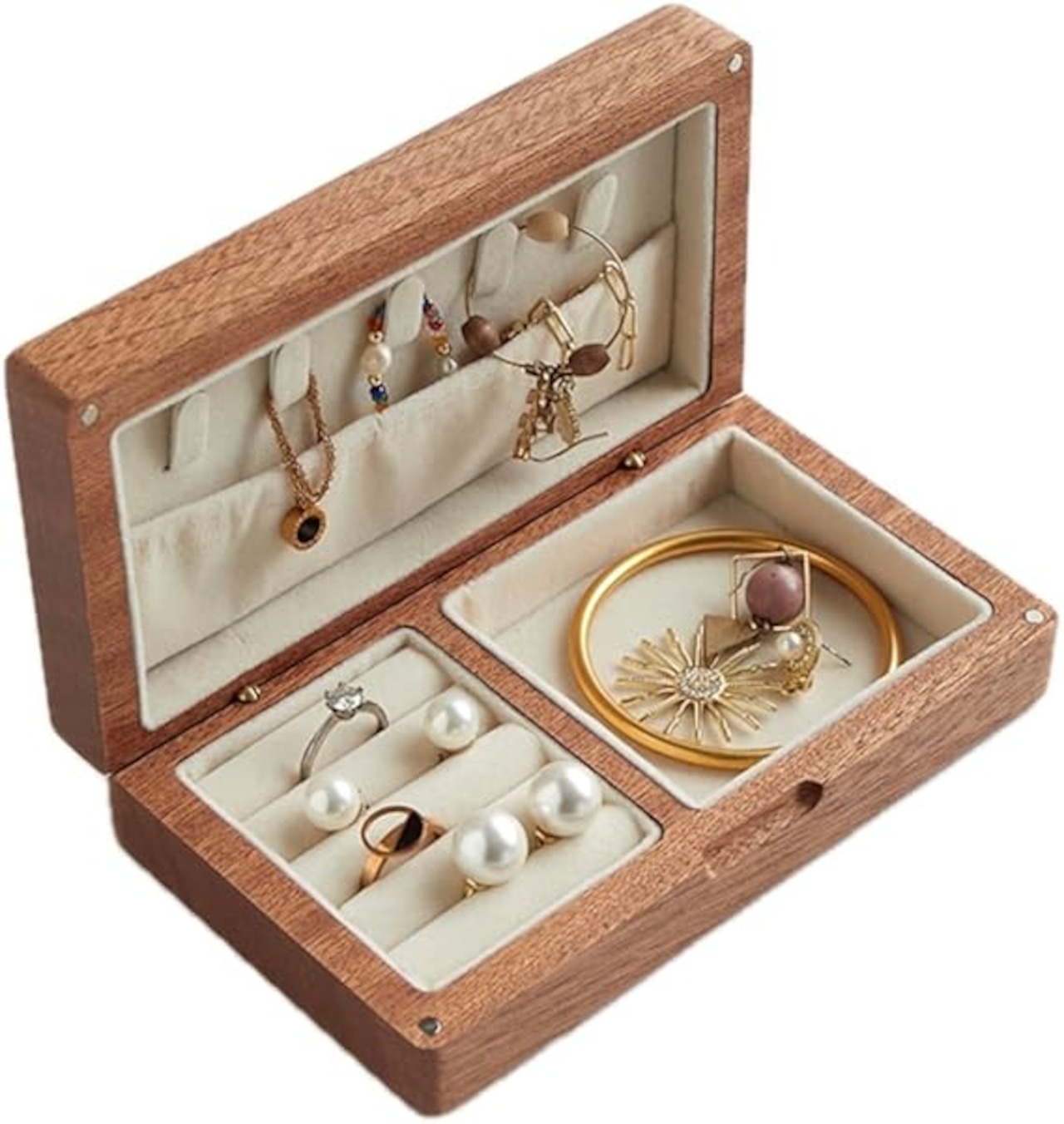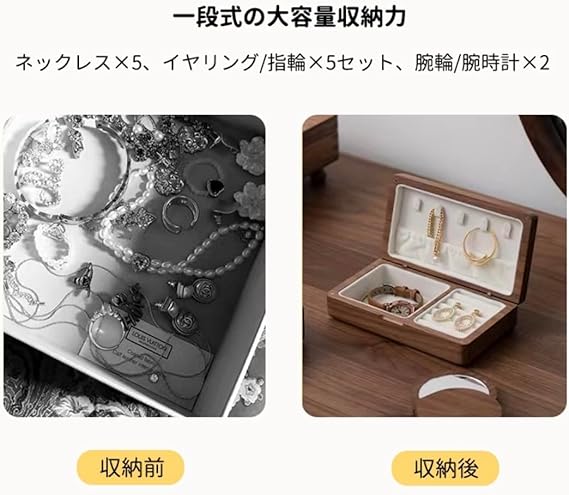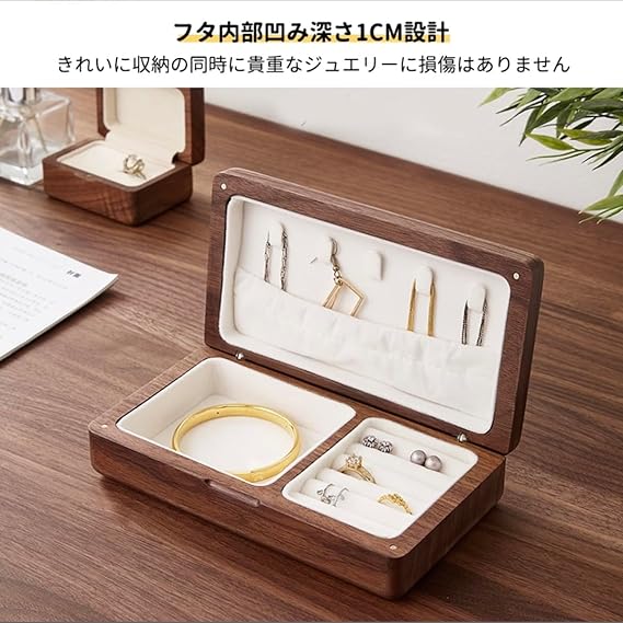 高級素材: 天然木製の外装とベルベット調の内装で、ジュエリーを優しく保護