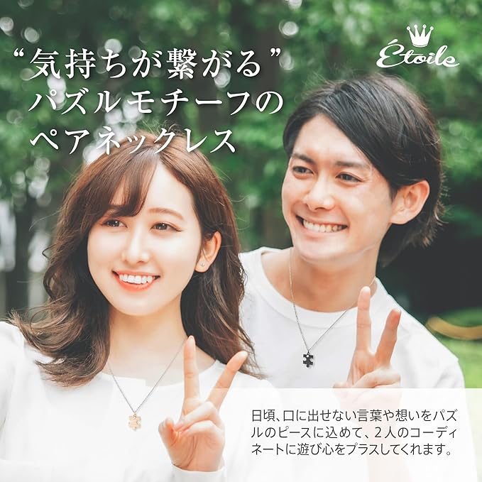 [Étoile] [エトワール] ペアネックレス パズル ネックレス ペアペンダント カップル お揃い 人気 ペア アクセサリー CZダイヤ サージカルステンレス 金属アレルギー対応 誕生日 記念日 プレゼント ジュエリーボックス付き